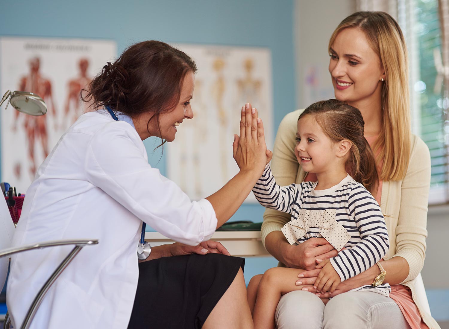Перший прийом завжди починається з бесіди, де лікар запитує про наявну проблему, також може ставити питання, щодо дитинства, особливостей розвитку та поведінки дитини, атмосфери в сім’ї та школі.